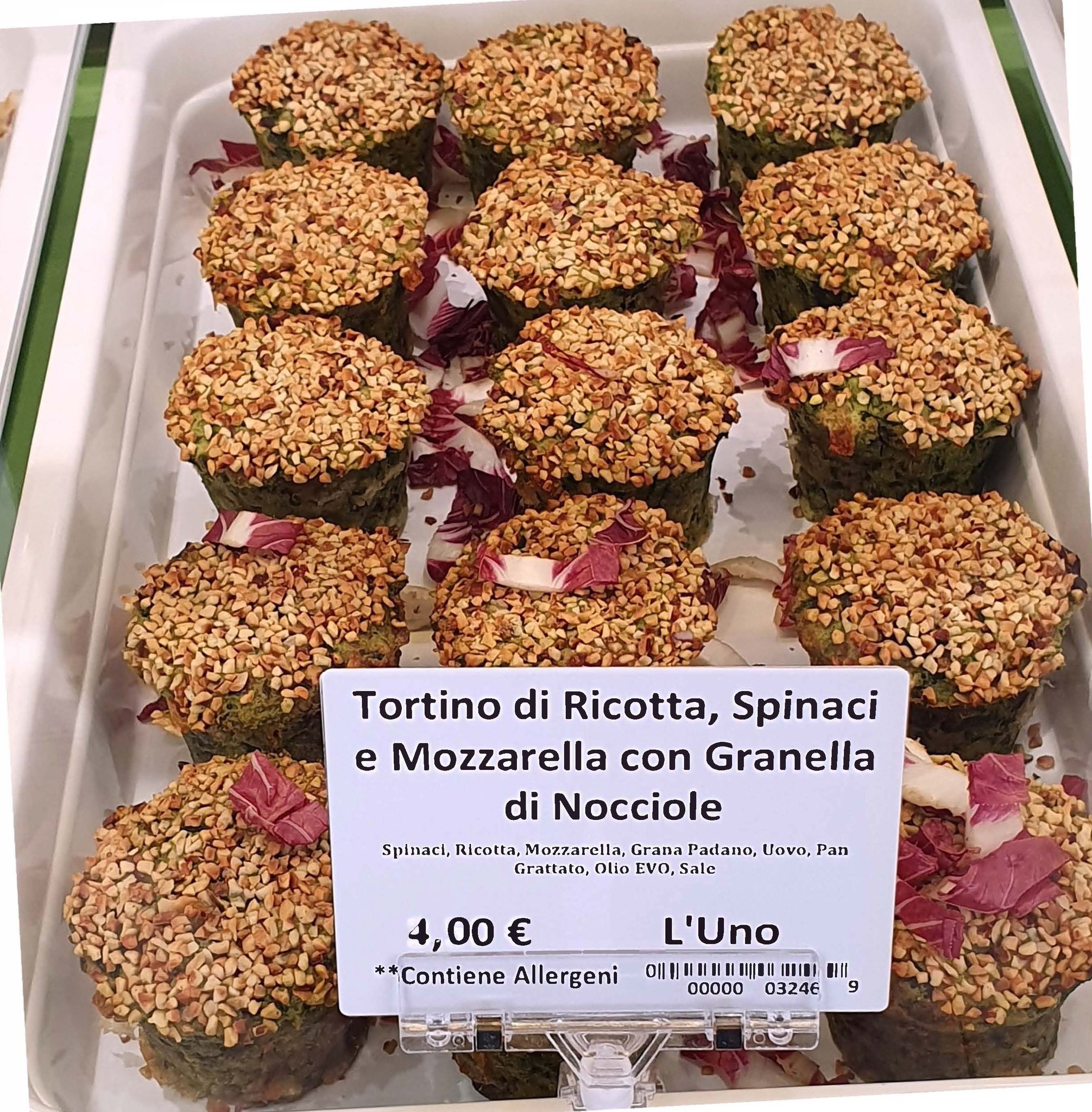 Un tortino morbido e cremoso che unisce la delicatezza della ricotta e la dolcezza degli spinaci freschi, legati dalla filante mozzarella per un cuore caldo e avvolgente. La superficie è impreziosita da una leggera crosta di granella di nocciole, che aggiunge una nota croccante e un profumo tostato in contrasto con la morbidezza dell’interno. Ideale come antipasto sfizioso o secondo vegetariano, è un piatto equilibrato e ricco di gusto, perfetto per chi ama i sapori semplici ma raffinati.